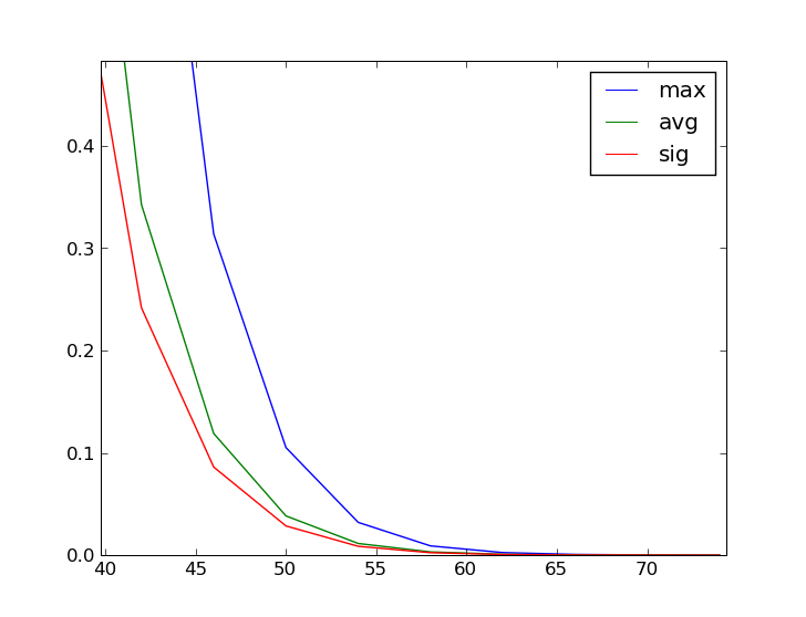 This plot shows the result. On the left the difference to the 80km height is given in percent over all 100.000 pencibeams used in this setup (plane height 15km). The upper border of atmosphere is on the axis below given in [km].